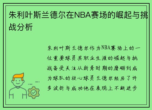 朱利叶斯兰德尔在NBA赛场的崛起与挑战分析